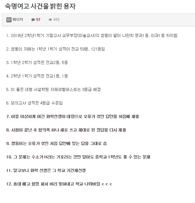 Subject   숙명여고 사건을 밝혀낸 기간제 화학교사 이야기