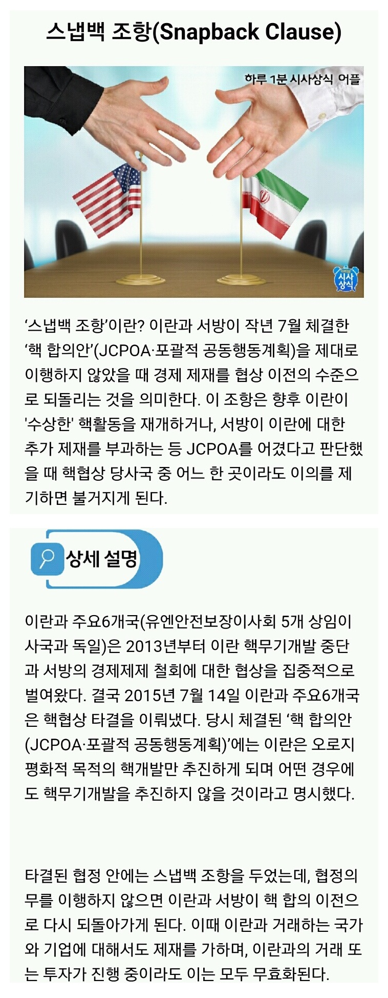 | Subject | 하루 1분 시사상식 152 - 스냅백 조항(Snapback Clause) |