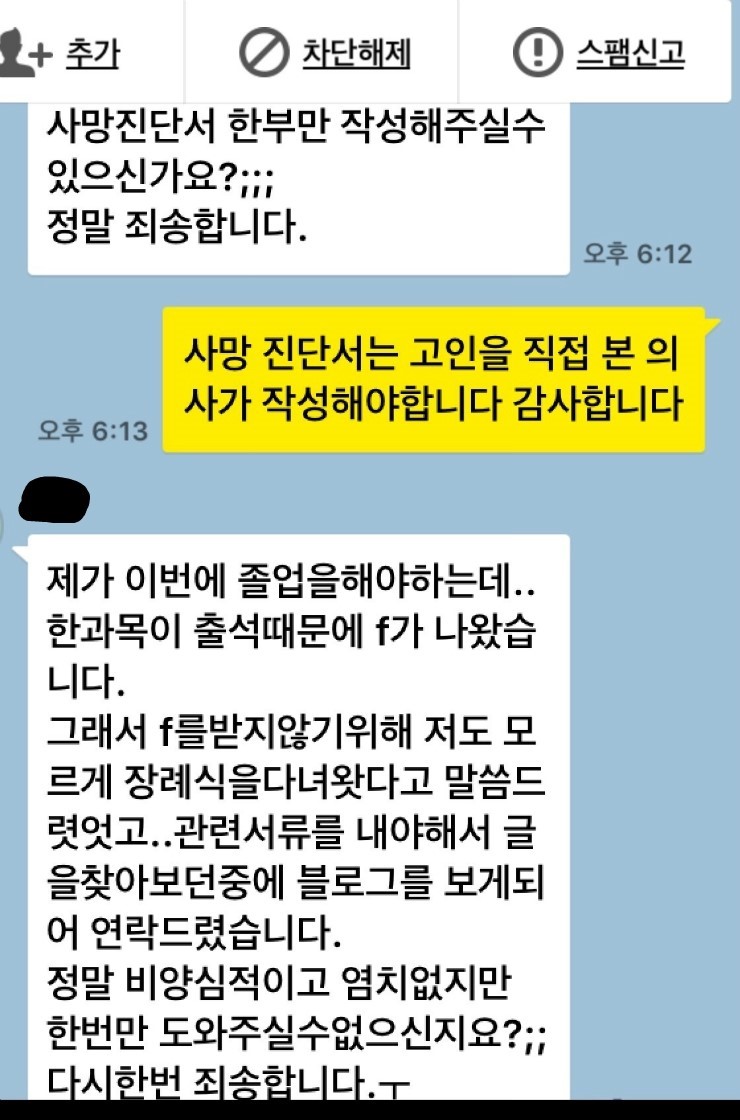 주: 의사가 운영하는 블로그에 올라온 사연이고 짤린 화면에 아부지 진단서 떼달라 했다고.