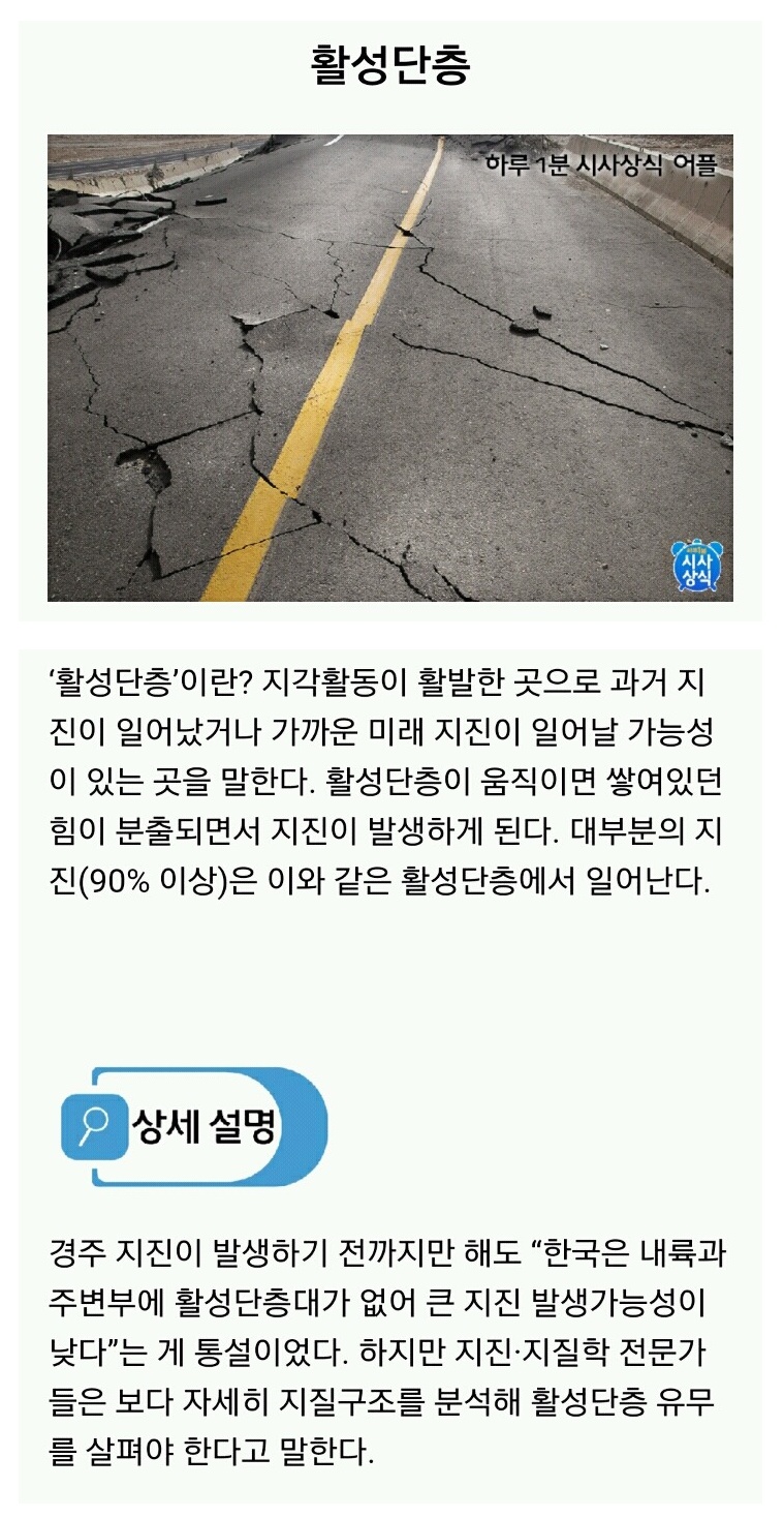 | Subject | 하루 1분 시사상식 157 - 활성단층 |