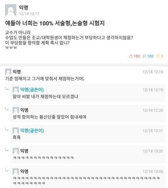 | Subject | 야 조교가 주관식 문제 채점하는거 문제있는거 아니냐? |