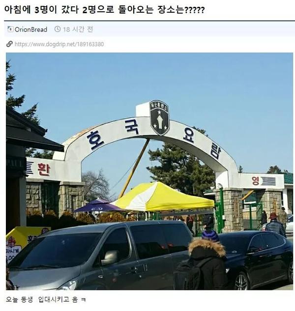 | Subject | 아침에 셋이 들어가서 몇 시간 후에 둘만 나오는 곳 |