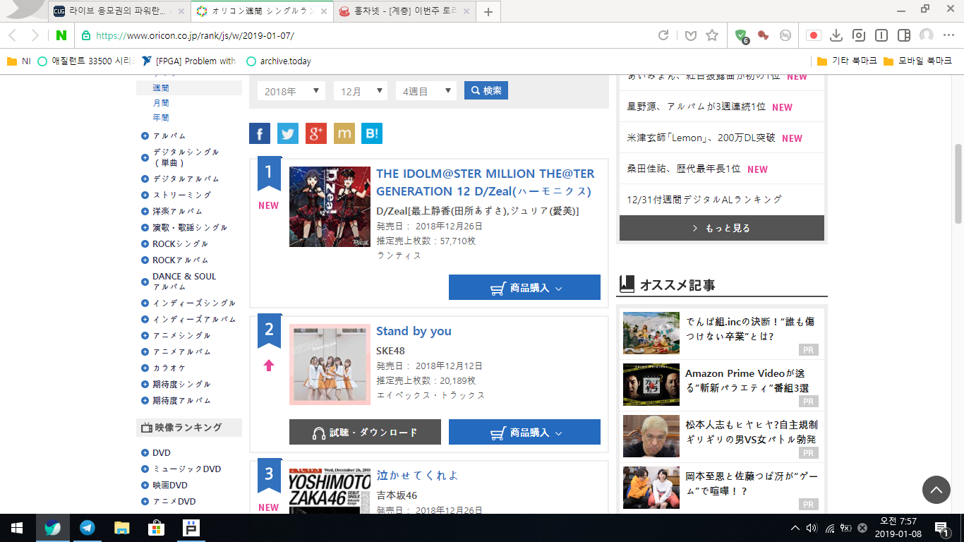 | Link #1 | https://www.oricon.co.jp/rank/js/w/2019-01-07/ |