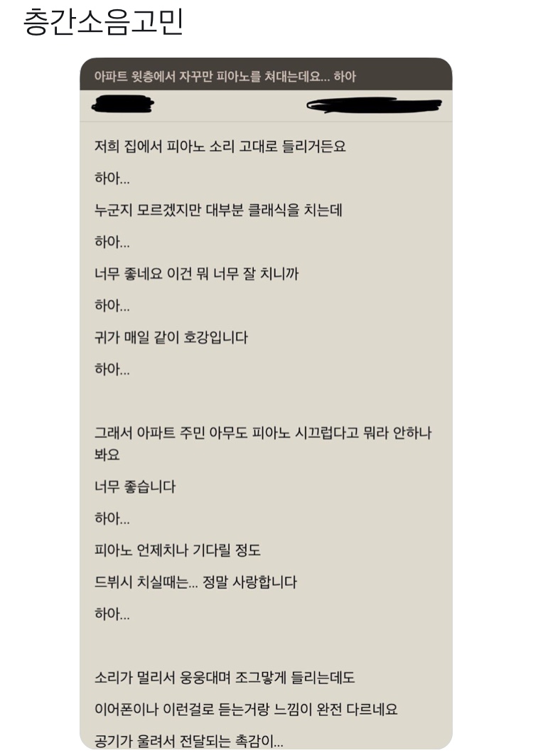 | Subject | 층간소음고민 |