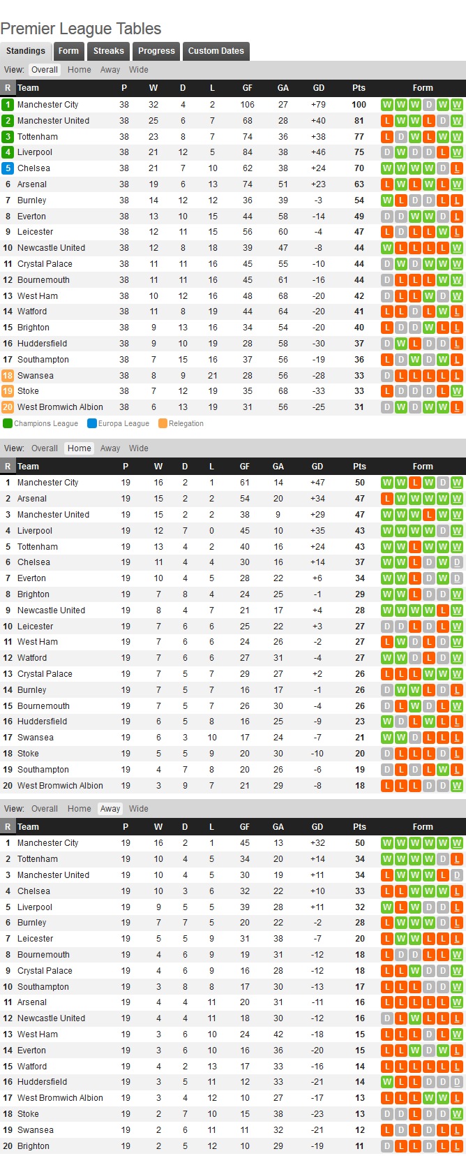 지금와서보면 새삼 놀랍긴한데, 지난 시즌 프리미어리그 홈 성적 2위 팀은 시즌 최종 순위를 6위로 마감한 아스날이었습니다. 심지어 승점 100점 기록한 맨시티랑도 딸랑 3점 차이 밖에 안날 정도로... 그런데 왜 6위를 했냐고 한다면 원정성적이 그야말로 Dog판이었기 때문이죠. 19경기 4승 4무 11패. 후반기 원정 경기 승리가 딸랑 1승이었습니다. 그게 또 시즌 최종전이었다는게 흠좀무. 벵거가 원정은 안따라갔다고 해도 믿을 정도의 성적이죠. 개인적으로 홈 경기랑 원정 경기를 둘 다 너무 못하면 그 팀에는 내부적인 문제가 있는거고, 홈 경기는 잘하는데 원정 경기를 못하면 그냥 단순히 전력이 약해서...라고 보는 편입니다. (물론 개인적인 생각이니 신뢰성은 1도 없습니다.) 강팀의 조건은 꾸역승이죠. 원정 경기에서 차이를 만들어 낼 수 있는건 결국 경기 내용을 말아먹더라도 하나를 만들어 줄 수 있는 한 방인데 그것에는 선수들의 퀄리티가 영향을 미친다고 생각을 합니다. 어쨌든 이번 시즌 아스날의 페이스는 저번 시즌만큼의 압도적인 기록은 아니지만 꽤 준수한 홈 기록과 저번시즌보다는 나아졌지만 여전히 엉망인 원정 기록이 상쇄되어서 결국 오십보 백보 상황에 머물러 있다고 볼 수가 있겠죠. 이번 시즌은 원정 경기에서도 괜찮게 하다가 최근 5경기에서 전부 승리를 놓치며 지난 시즌의 악몽을 떠올리게 하고 있습니다. 북런던 옆동네 팀은 경기 수가 다르다지만 원정 승점을 2배나 쌓고 있으니... 아스날보다 원정 경기 실점이 많은 팀은 프리미어리그에 단 두 팀입니다. 본머스와 풀럼. 가뜩이나 수비진 퀄리티로 고생하는 팀인데 그마저도 줄줄이 돌아가면서 눕고 있으니 에메리 입장에서도 속이 탈 듯. 현실적으로 4위를 가지고 첼시, 맨유와 함께 경쟁해야하는 상황에서 후반기 원정 성적은 아스날의 유로파 성적만큼이나 꽤 지켜볼만한 포인트일듯 하네요. 물론 그것보다도 돌아오는 새벽에 있을 첼시와의 홈 경기가 먼저겠지만... 아스날은 여기서 패하면 15경기 남기고 승점 9점차. 맨유한테도 제껴질 공산이 크고 겨울 이적 시장으로 보강은 커녕 임대만 노리고 있는 와중에 장기 부상에서 복귀하면서 전력에 큰 도움이 될 만한 선수도 전무. 꼼짝없이 유로파 강제 올인모드입니다. ![]() 은퇴 시즌까지 홈경기에서는 깡패모드를 유지했던 벵감 0