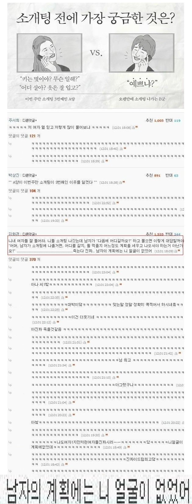 | Subject | 소개팅 전에 가장 궁금한 것은? |