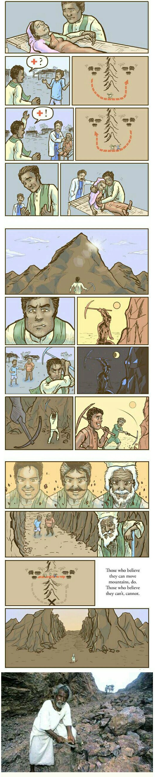 자기 아내가 열악한 길 환경 때문에 목숨을 잃은 후 1960년부터 82년까지 산을 뚫음.