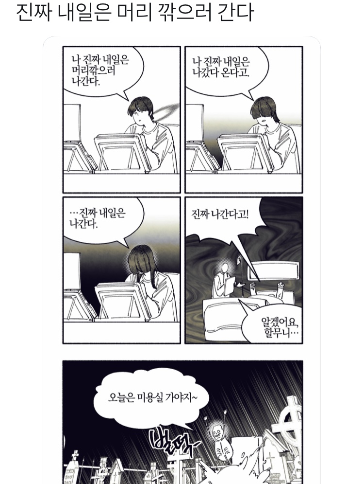 | Subject | 진짜 내일은 머리 깎으러 간다 |