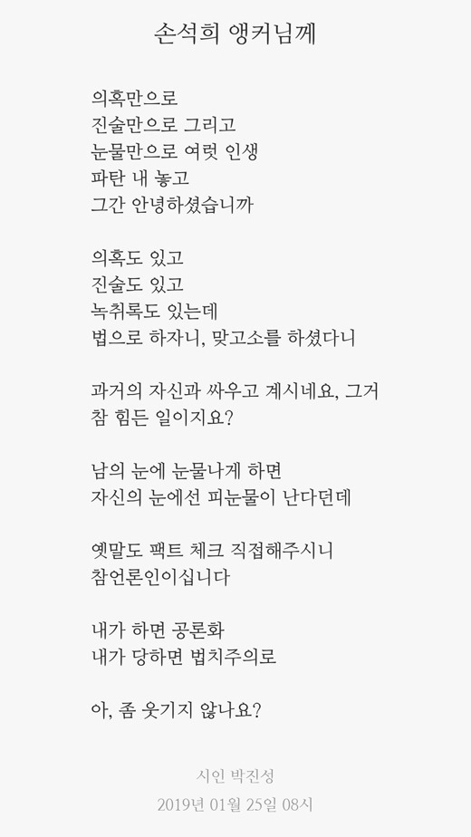 손석희 자승자박에 시 한 수 읊어보낸 박진성 시인 0
