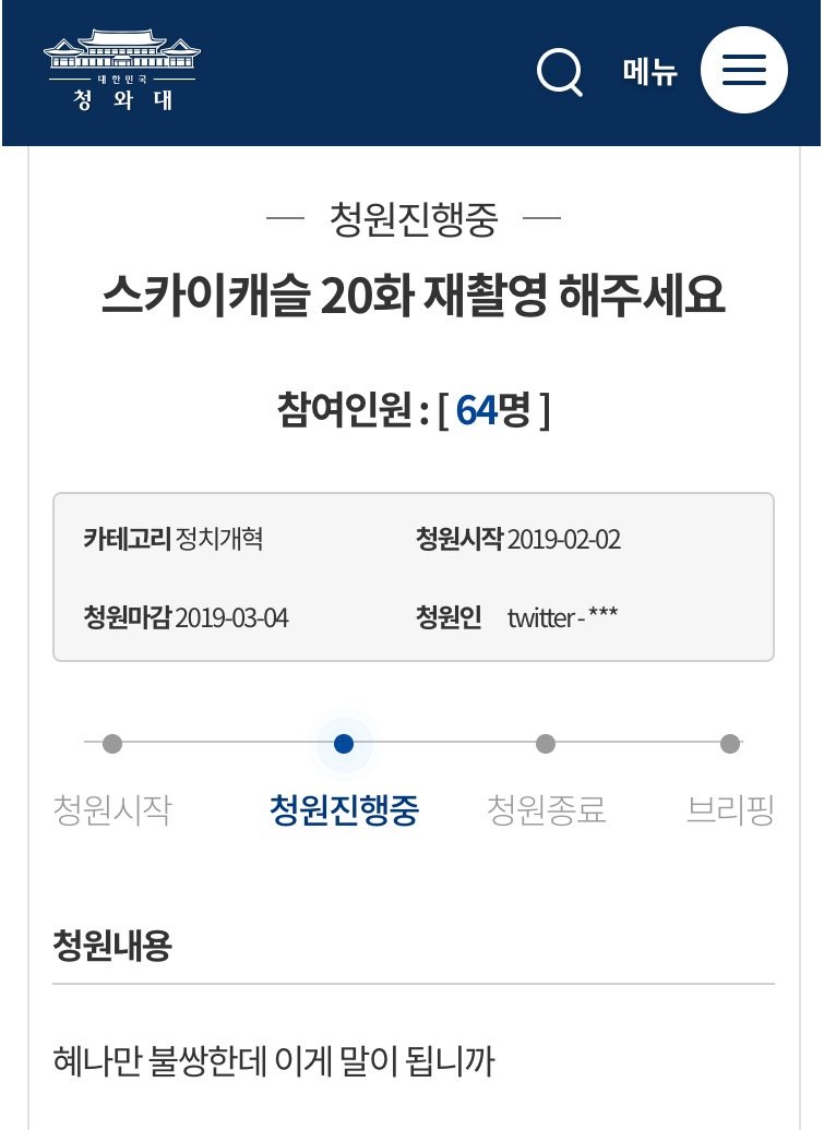 100만 서명 받으면 JTBC에서 재촬영한다네요.