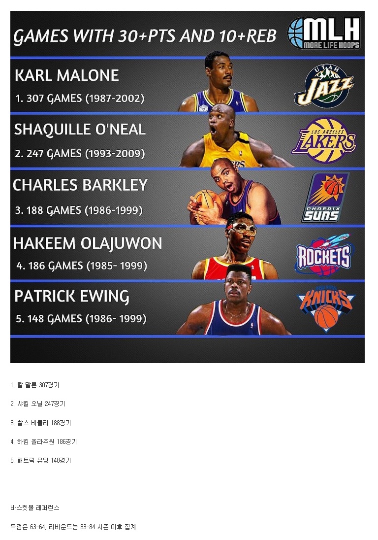 | Subject | NBA 30+점 10+리바운드 경기수 Top 5 |