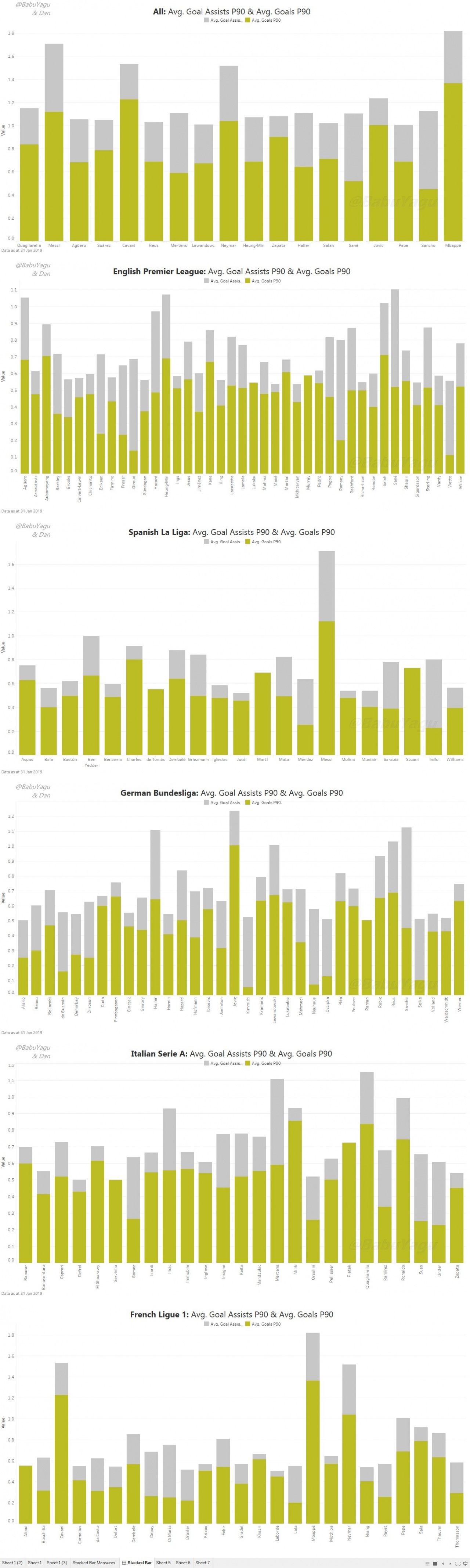 https://twitter.com/babuyagu/status/1091735948612825089 맨 위의 그래프가 5대 리그 공격포인트 1.0 이상을 기록하고 있는 선수들이고, 나머지 각 리그 그래프는 0,5 이상의 수치를 기록하고 있는 선수들을 표시한 그래프입니다. 기준은 2018년 1월 31일까지, 리그에서 630분 이상 출장한 선수들 대상입니다. 그리고 맨 위에 있는 그래프에서 네이마르 옆에 있는게 손흥민 맞습니다. 펄-럭 글씨가 너무 작아서 안보이신다면 트위터 링크로. 0