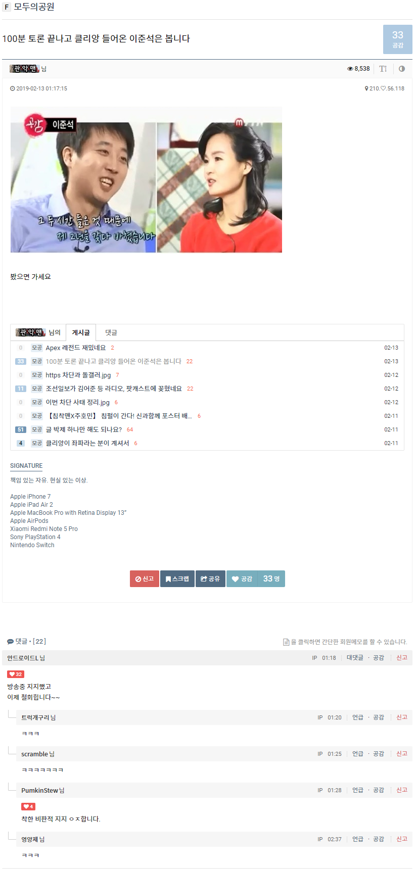 - 유머가 아닌 펌글, 영상 등 가볍게 볼 수 있는 글들도 게시가 가능합니다.