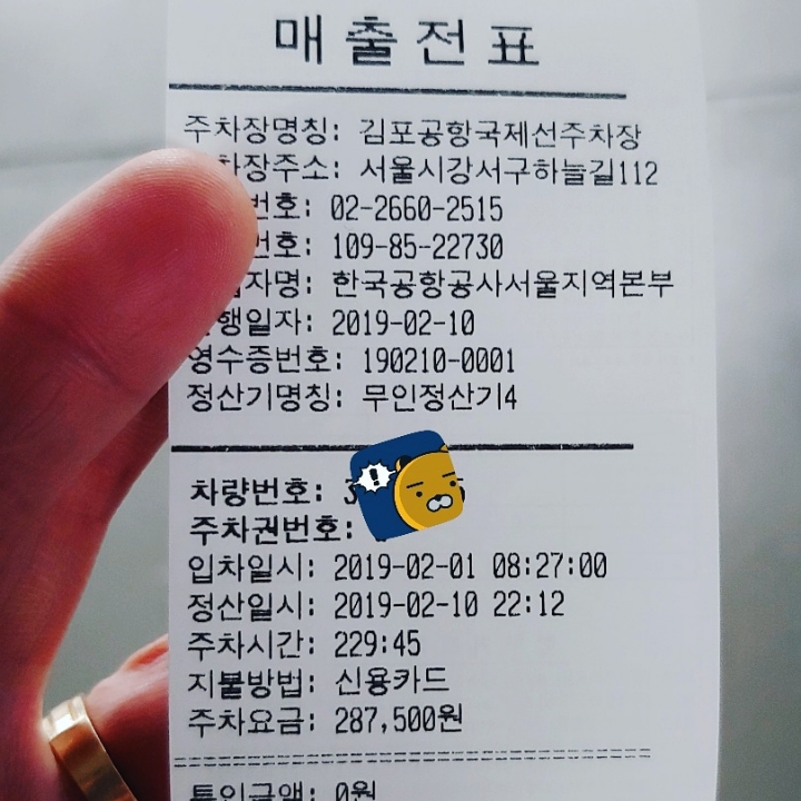 | Subject | 김포공항 주차장 열흘 주차비.jpg |