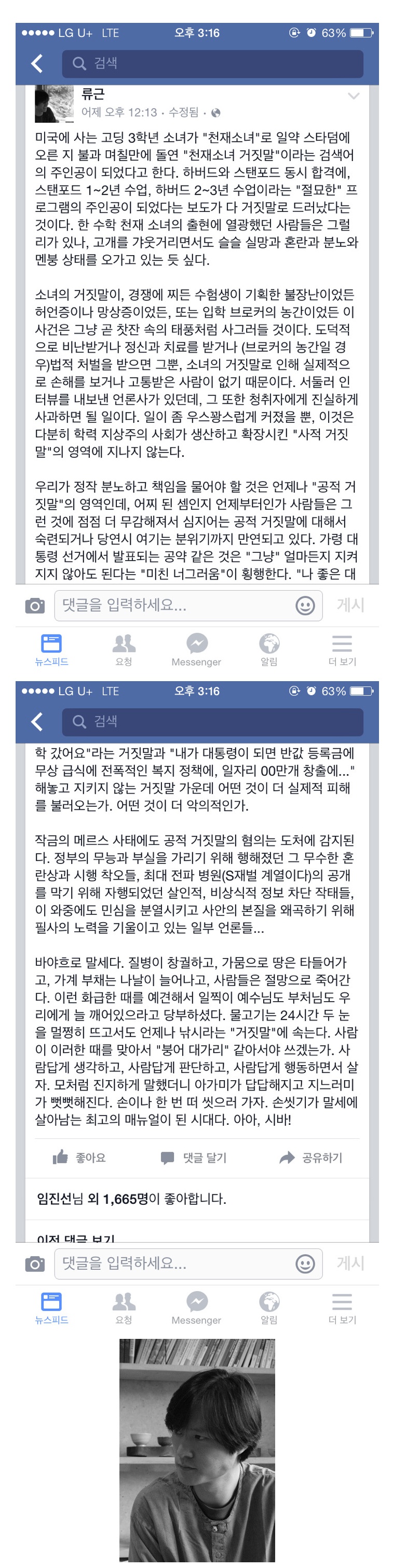 | Subject | 천재 소녀 논란에 대한 시인 류근님의 페북.jpg |