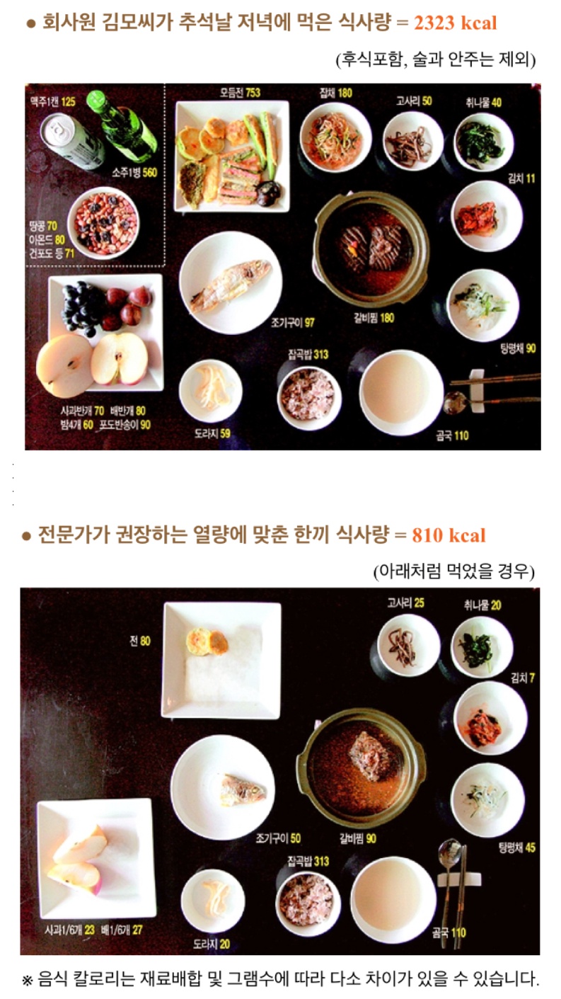 전문가가 권장하는 열량에 맞춘 한끼 식사량