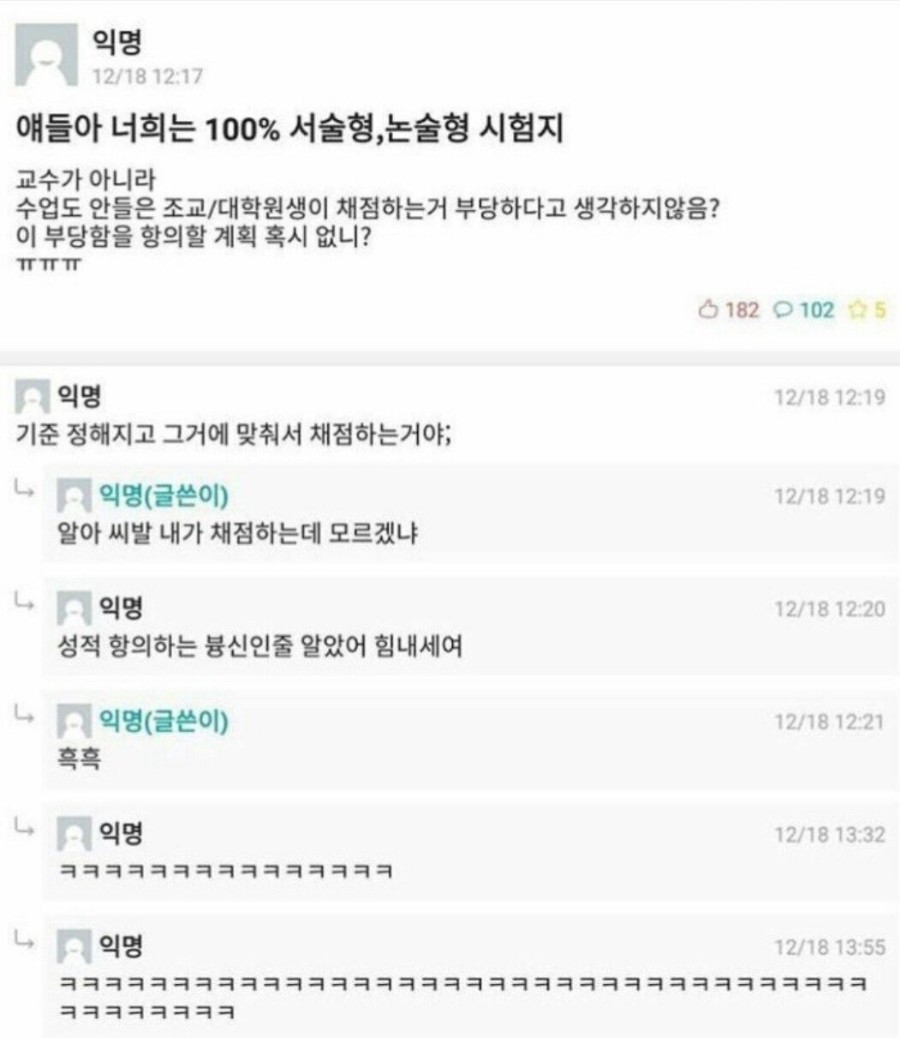 | Subject | (재탕) 수업도 안들은 조교가 시험 채점하는거 부당하지 않냐? |