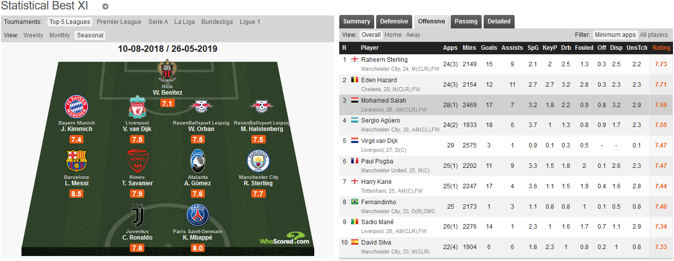 오늘부로 후스코어드 평점에서 EPL 1위 & 월드 베스트 11에 등극. 아직 만 24세 3개월 밖에 안 되었다는 게 고무적이죠. 1