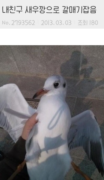 서양 갈매기는 먹이를 뻇지만, 한국 갈매기는 먹이로 잡힙니다. 0