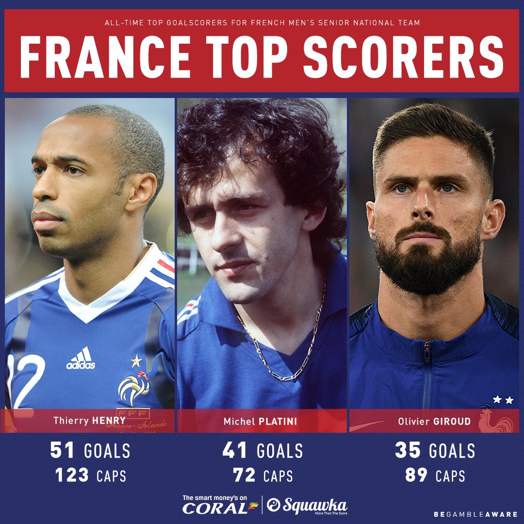 프랑스 국가대표팀 역대 득점 순위 1위 앙리 51골 2위 플라티니 41골 3위 지루 35골 4위 트레제게 34골 5위 지단 31골 물론 경기 수는 지루가 20경기 가까이 많긴 합니다. 오늘 경기에서 지루, 음바페, 그리즈만이 모두 득점에 성공하면서 아이슬란드를 완파. 그리고 음바페도 참 잘하는 것 같아요. 개인적으로 음바페가 어지간해서는 안망할 것이다라는 생각이 들었던게 스피드는 둘째치고 득점을 위한 움직임이나 터치, 마무리 일련의 과정들이 이렇게 깔끔한 선수는 현재 동 나이대 유망주들 중에서 찾아보기 힘들어서... 오늘 골 장면도 완벽에 가깝지 않나 싶습니다. 챔스에서 데 헤아한테 막힌 1:1 찬스를 두고 그동안 거친 골키퍼들에 대한 부상 트라우마다 라는 의견도 있는데 그것만 잘 극복해낸다면.. 0