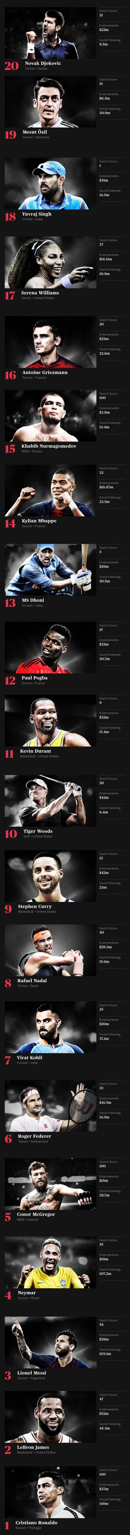 ESPN 선정 세계에서 가장 유명한 선수 TOP 20 0