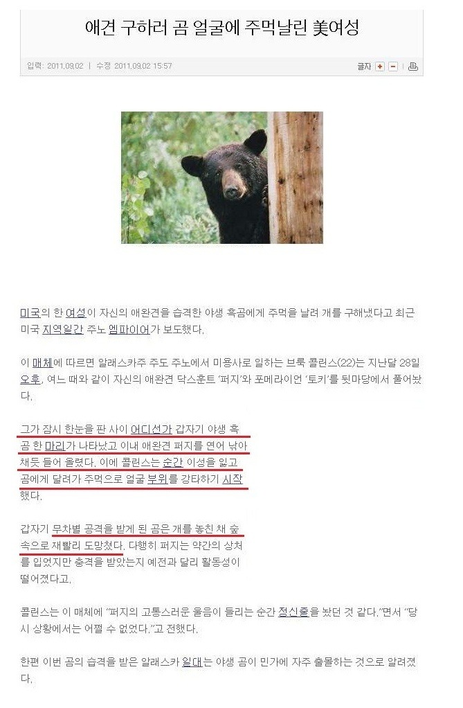 | Subject | 애견 구하러 곰의 안면 강타한 여성 |