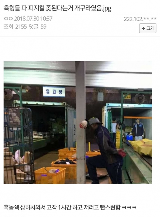 | Subject | 본토조선 택배 상하차의 위엄! |