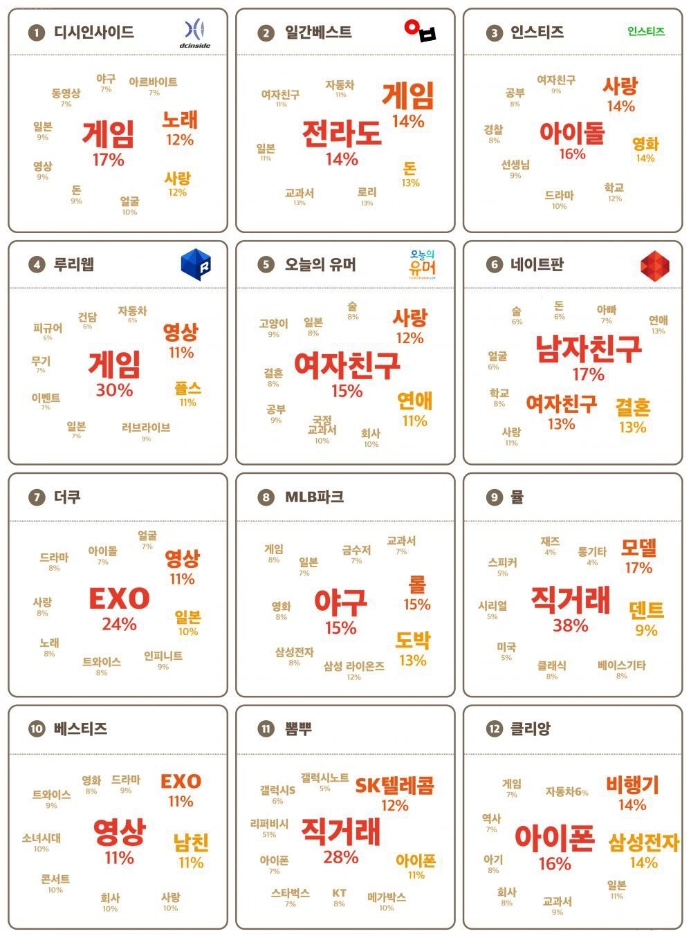 3795 인터넷 커뮤니티 관심사 모음 10 위솝 15/10/23 4322 0