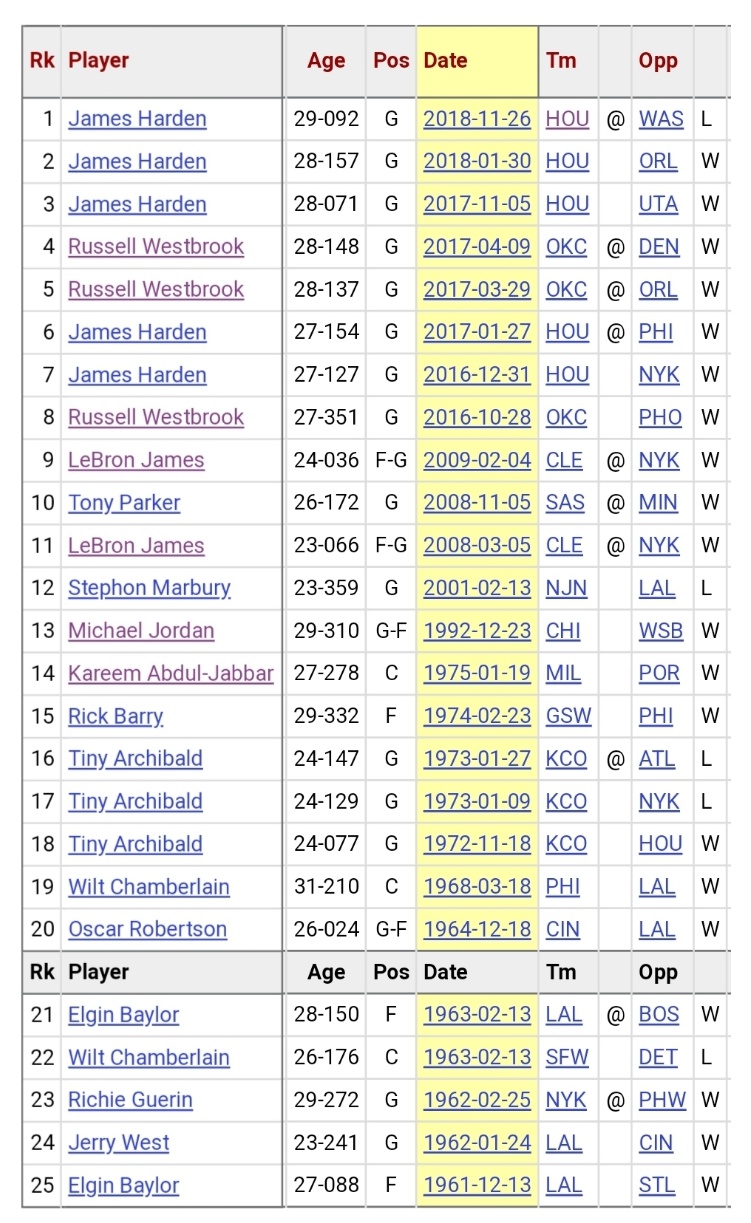 NBA 역대 단일게임 50+득점 10+어시스트 0