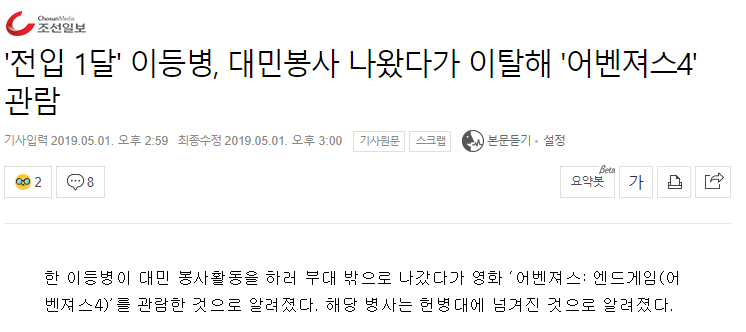 Subject   [노스포] 어벤져스가 보고 싶었던 군인