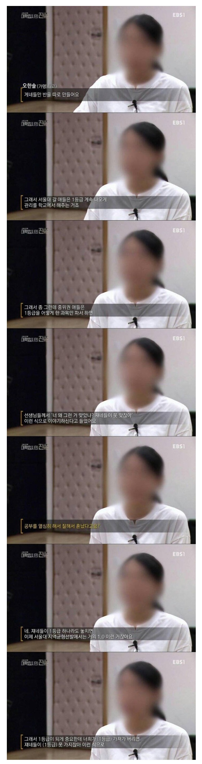 서울대 갈 애들은 1등급 계속 나오게 관리를 해주는 거죠 1