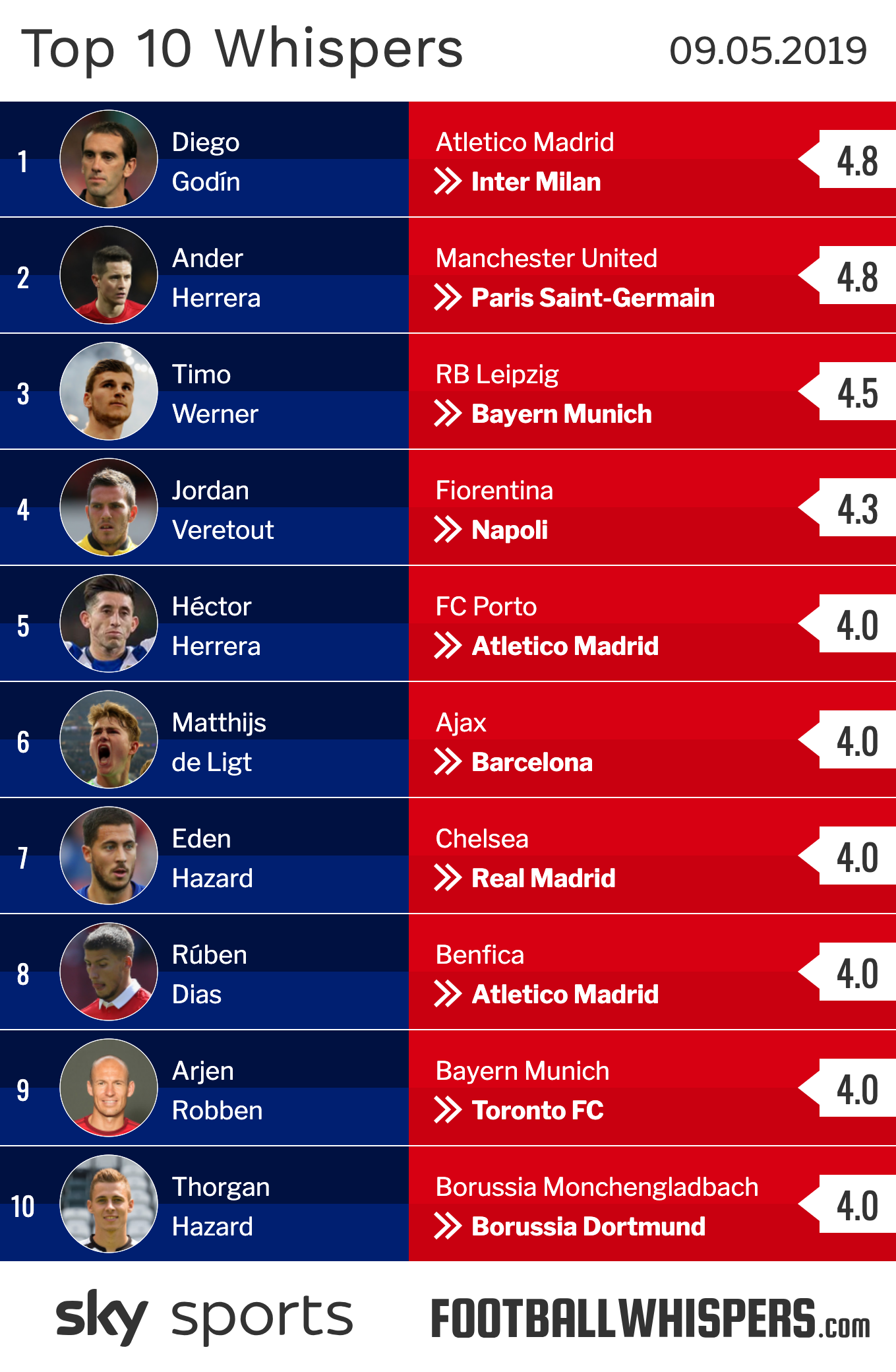 이 표가 현재 루머가 나고 있는 선수들을 잘 보여주는 것 같아서 가져와 봤습니다. 점수는 이적 가능성이고 5점 만점이라네요. 여기에 제가 줏어들은걸 덧붙여 더 적어보겠습니다. 디에고 고딘은 인테르와 합의를 마쳤고 메디컬만 남은 상태라고 합니다. 데 리흐트는 이미 바르셀로나와 이적료 70m에 주급 협상까지 끝났지만 에이전트 비용 때문에 지체되고 있다는 소식이 있네요. 토르강 아자르 같은 경우에는 예전에 제가 길게길게 글을 쓰다가 엎어버린 적이 있었습니다. 그 때 써놨던 문단을 그냥 복붙하겠습니다. 토르강 아자르의 계약 상태도 에덴 아자르와 마찬가지로 내년 여름에 끝납니다. 그러니까 이번 여름에 계약기간이 단 1년만 남는 상태. 마찬가지로 팔려면 지금 팔아야겠죠. 선수 개인은 도르트문트로의 이적을 원한다고 합니다. 그리고 마침 도르트문트도 토르강 아자르에 대해 비드를 했다고하며, 도르트문트의 이적료 오퍼는 42m. 한편 벨기에 소스에 의하면 리버풀 역시 토르강 아자르의 영입을 추진중이라고 하며 도르트문트보다도 더 높은 이적료를 제시했다는 이야기도 있습니다. 그리고 묀헨글라트바흐는 도로트문트보다는 리버풀로의 이적을 훨씬 선호한다고 하네요. 이적료도 높고 토르강 아자르를 같은 리그 팀에 보내고 싶지 않은 것도 있을테니 당연한 이야기겠지만. 하지만 토르강 아자르는 이적하는 팀에서 충분한 출장 시간 확보를 원하고 있으며 리버풀로의 이적은 그것이 힘들 것이라고 생각하기에 리버풀로의 이적을 거부하고 있다고 합니다. 그리고 표에는 없지만 이번 시즌 에버튼으로 임대되어 뛰었던 안드레 고메스를 토트넘이 30m에 영입 시도 하고 있다는 소식이 있네요. 추가로 토트넘은 말콤에게도 관심이 있다는 루머. 이 밖에 라 리가 선수들 소식이 몇 개 더 있네요. 일단 바르셀로나의 백업 골키퍼 실러센은 벤피카로의 이적에 근접했다고 합니다. 레알 마드리드의 마르코스 요렌테는 지단과의 면담 이후 플레잉 타임이 필요한 시기이기에 팀을 떠나는 것으로 합의를 했다는 소식이 있습니다. 영구 이적은 아니고 임대나 바이백으로 이적을 추진한다는데 선수 본인이 라 리가 잔류보다는 프리미어리그에 관심이 많다네요. 링크가 되고 있는 구단은 맨유, 아스날, 아틀레티코 마드리드, 세비야. 바이언은 하메스의 이적 옵션을 포기할 것으로 보이며, 이에 관심 가지는 팀들도 많다고 합니다. 레알 마드리드는 35m 정도에 하메스를 이적시킬 생각이 있다고 하며 링크되는 팀은 맨유, 첼시, 나폴리, 파리. 0