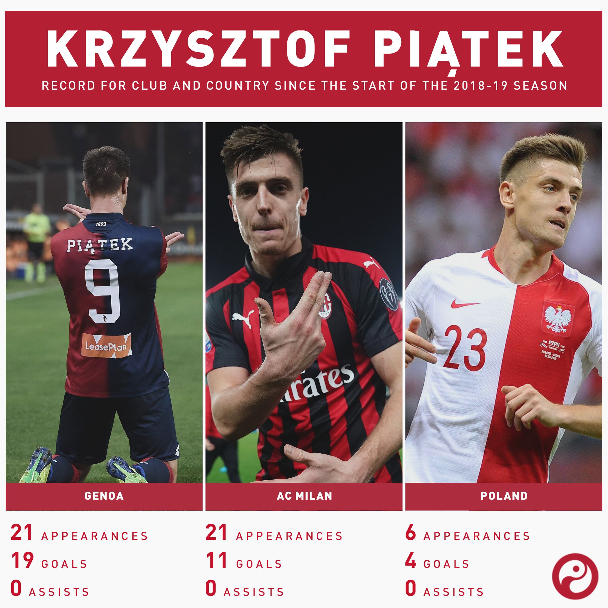 피옹테크는 지난 시즌부터 지금까지 3개의 유니폼을 입고 뛰었습니다. 제노아, 밀란. 폴란드 국가대표팀. 그리고 그 세 팀에서 모두 득점 리더를 달리고 있죠. 재미있는건 이 한 시즌이 넘는 긴 기간동안 그가 기록한 어시스트가 0개라는 점. 잘못 툭 건들여서도 나올 수 있는게 어시스트인데, 하나도 없다는게 참 재미있습니다. 0
