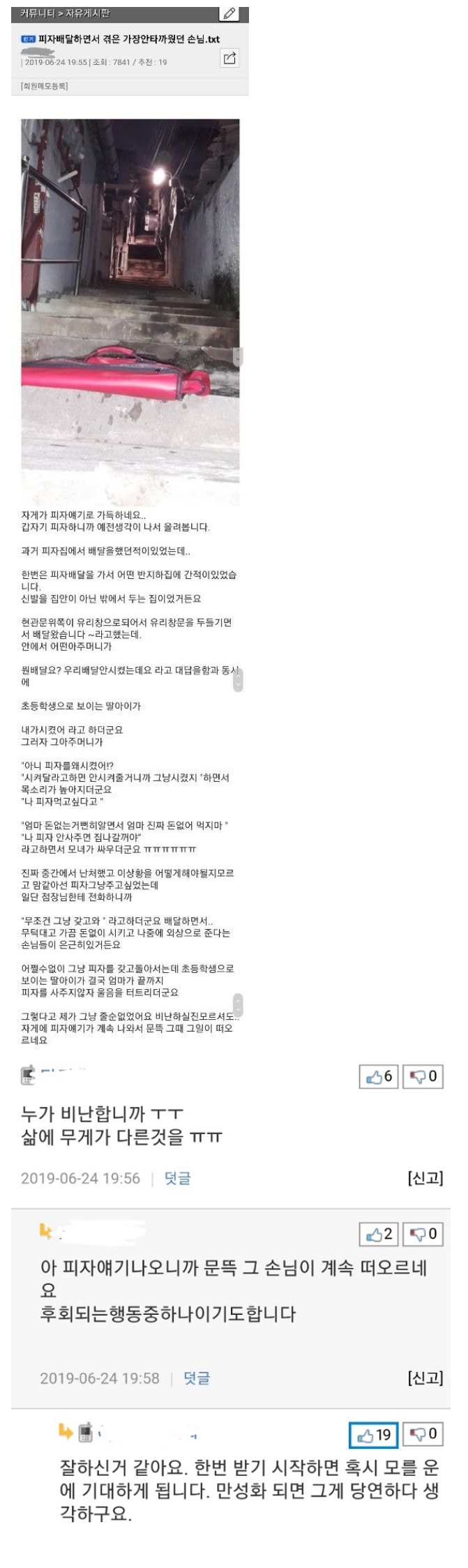 | Subject | 피자배달 하면서 겪은 가장 안타까웠던 손님 |