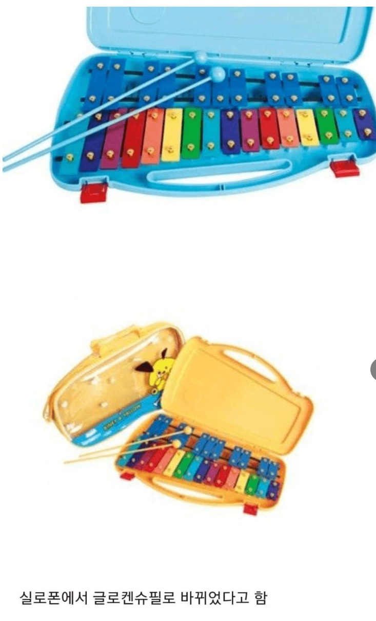 -------------------------- 언제나 그렇듯 요즘 아닐듯 ;; 여튼 저 졸업하고긴함. 앗 그럼 요즘이네 ^^ 실로폰 https://namu.wiki/w/%EC%8B%A4%EB%A1%9C%ED%8F%B0 글로켄슈필 https://namu.wiki/w/%EA%B8%80%EB%A1%9C%EC%BC%84%EC%8A%88%ED%95%84 나무로 만들면 실로폰 금속으로 만들면 글로켄슈필 https://www.redtea.kr/?b=31&n=184173 얍얍! 0