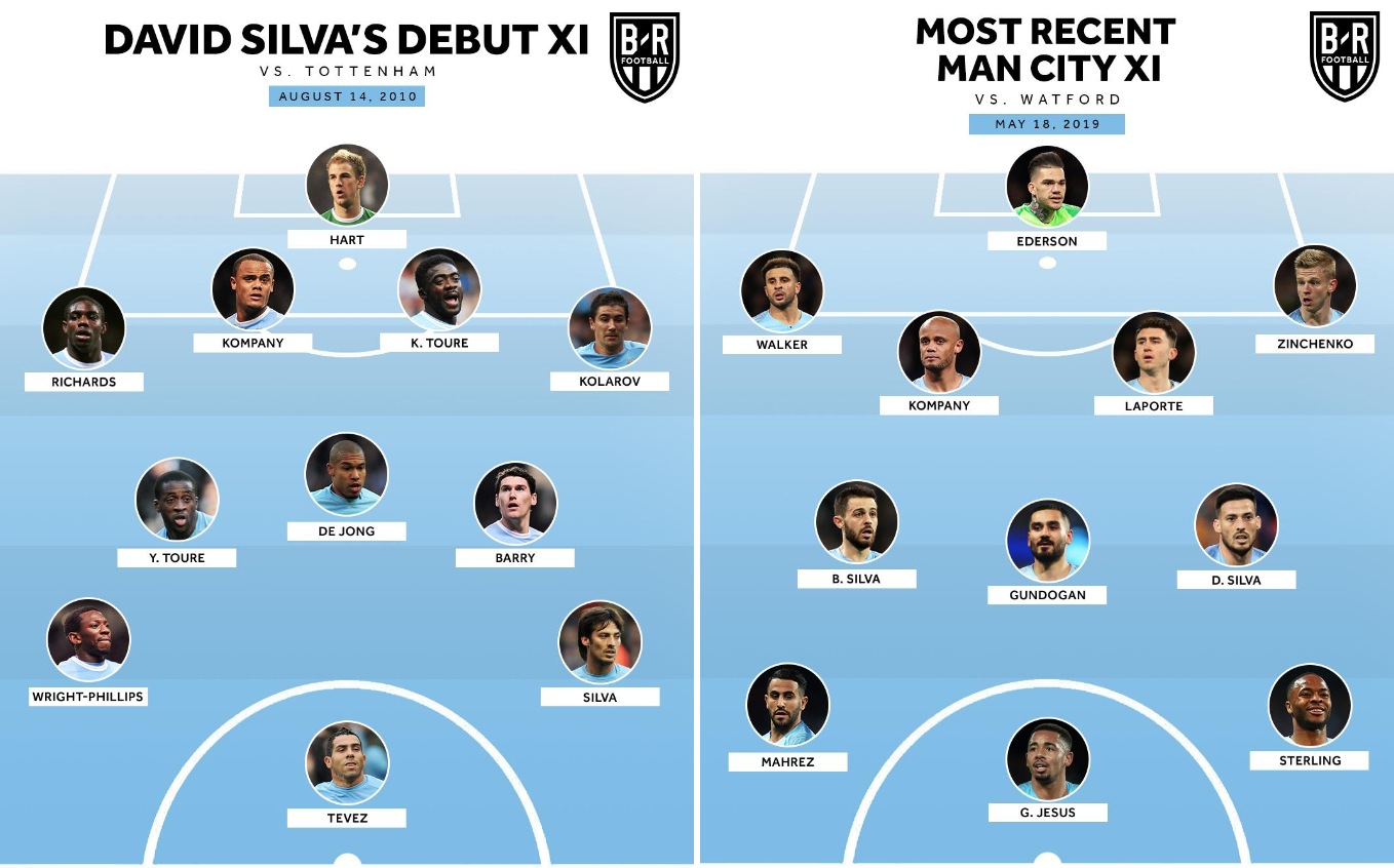 이번에 맨시티에서 10년을 채우고 떠날 것이라 인터뷰한 다비드 실바. 지금까지 딱 9년을 뛰었는데 라인업에 같이 살아있는건 콤파니 뿐이네요. 콤파니마저도 사실 이번 시즌 거의 뛰지 못하다가 막판에 몇 경기 뛴 것을 고려해본다면 주전으로 살아있는건 사실상 실바 뿐.