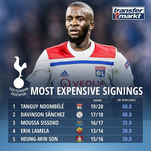 ![]() 정확한 이적료가 공개되는게 아니다보니 보시다시피 언론들마다 제각각이긴합니다. 어쨌든 은돔벨레가 클럽 레코드인건 변함이 없고, 손흥민도 순위권에 위치해 있다는건 사실이겠지만. ![]() 요건 트랜스퍼마크트에서 정렬한 20m 이상의 이적료 선수들 목록. 0