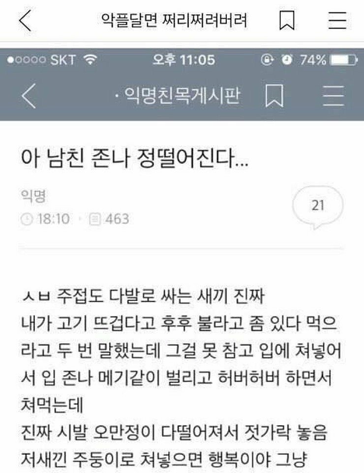 허버 밥먹는것도 꼴보기 허버 싫을 때라는데 허버 근데 저건 그냥 허버 꼴보기 싫은거 아닌가...하는...허버허버 0