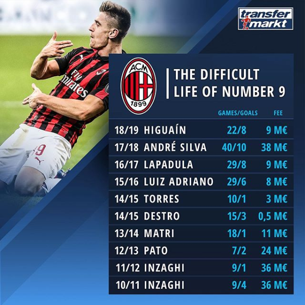 생각보다 징크스가 꽤 길어지고 있습니다. 물론 2010년대 이후로 밀란은 9번이 문제가 아니라 팀이 전체적으로 내려와있는게 문제지만... 피옹테크가 잔혹사를 끊고 AC 밀란 공격수 계보를 이어갈 수 있을지. 0