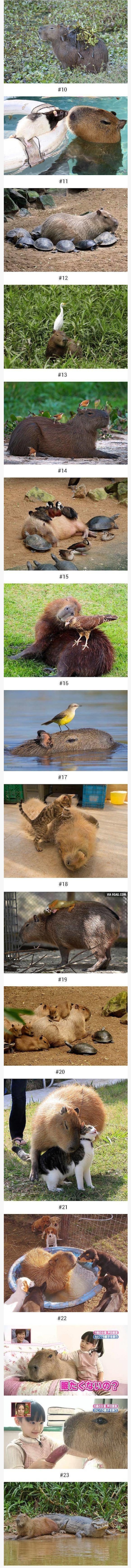 https://youtu.be/3A2s70Z_LTg -------------------------------------------------------- https://namu.wiki/w/%EC%B9%B4%ED%94%BC%EB%B0%94%EB%9D%BC [카피바라가 사는 지역의 주민들은 가톨릭의 교리상 육식을 금하는 금요일에는 카피바라를 잡아먹는다고 한다. 이유인즉슨 물에서 사니까 생선으로 간주해서라고. 토끼 고기를 조류 고기 취급하고 멧돼지 고기를 고래 고기 취급한 일본이 연상된다] 닝겐들...머리도 좋아... https://animalssittingoncapybaras.tumblr.com/ 동물들 올라간 카피바라 짤들 모아놓은 텀블러라네요 1
