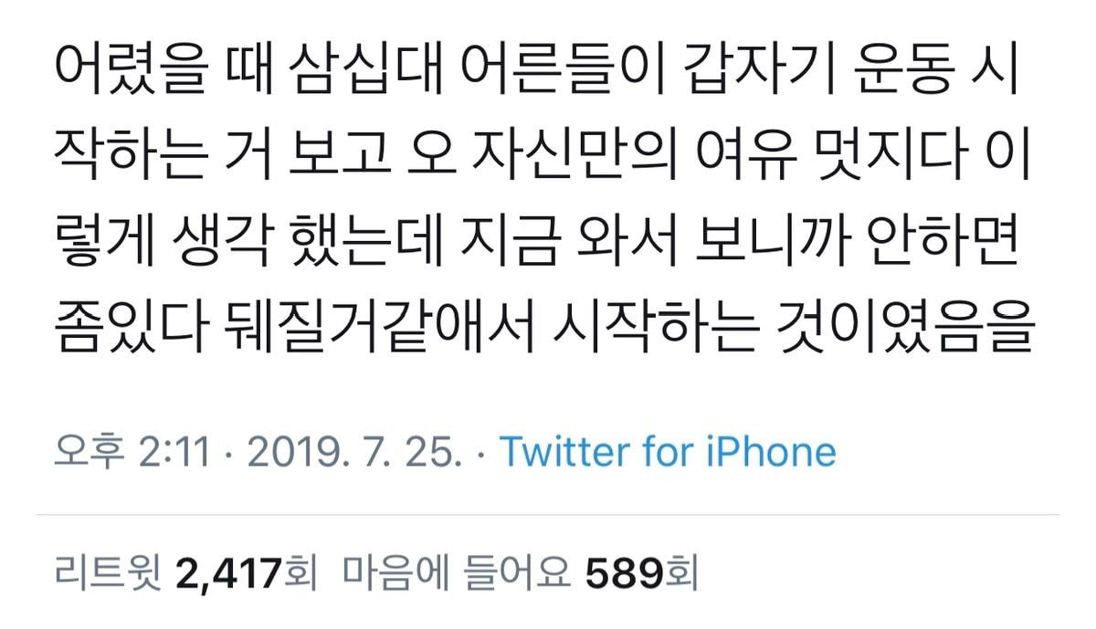 | Subject | 30대들이 갑자기 운동하는 이유 |