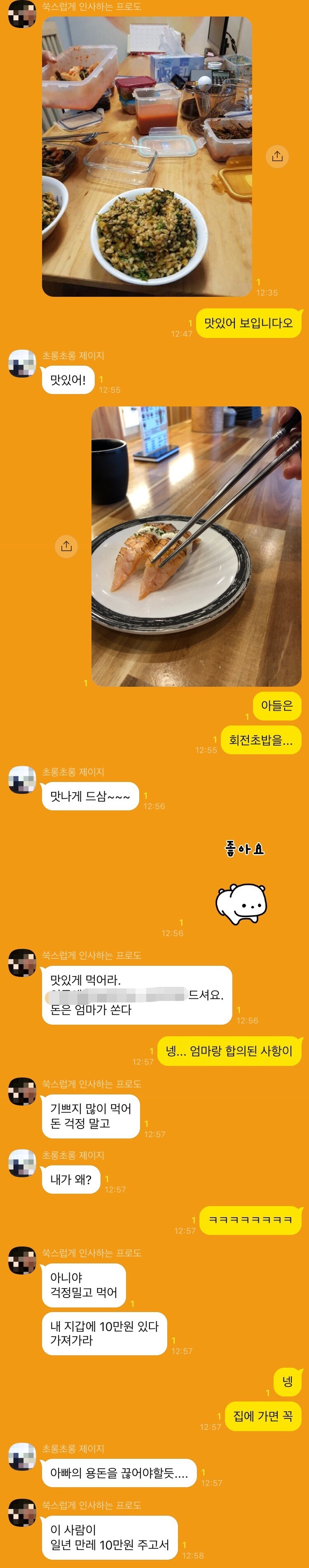 (아빠 용돈이 끊기던 말던 아무튼 10만원 가져갔다는 내용)