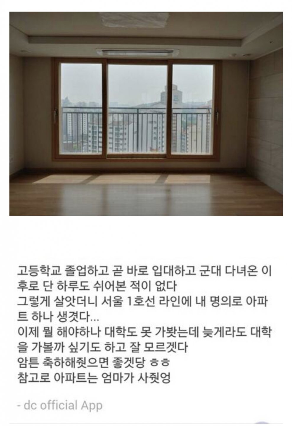 좋은 대학나오면 좋은 집에서 살 수 있지 않을까 라고 살아온 제 인생을 반성합니다.