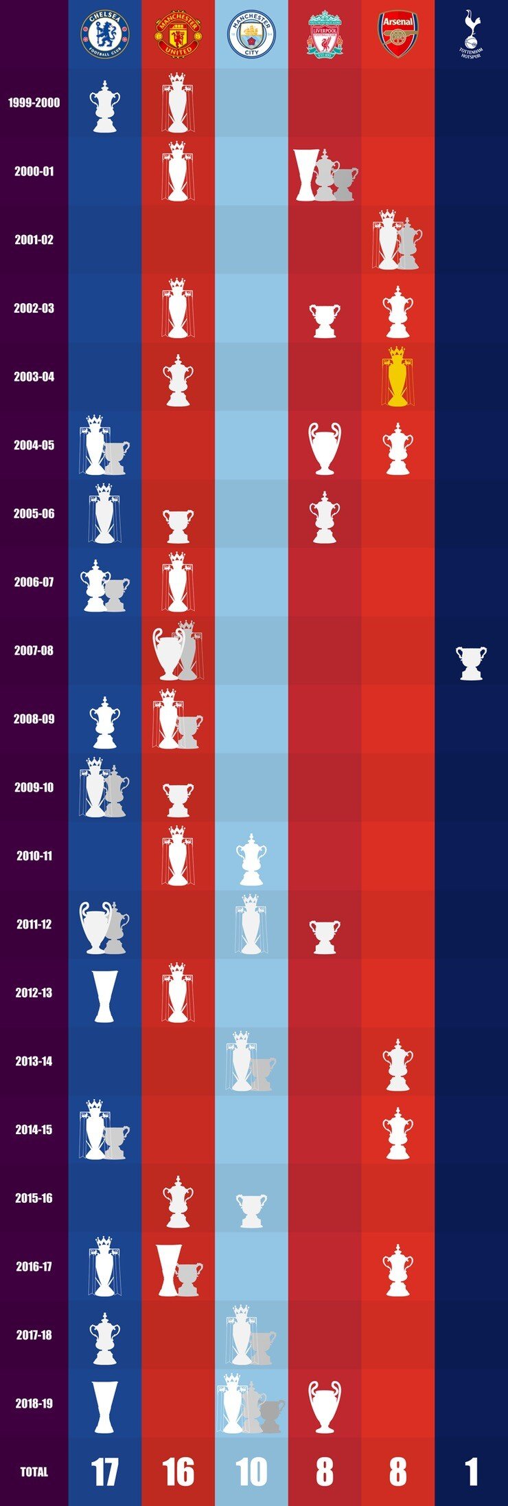| Subject | [해축] 2000년 이후 EPL 빅 6 우승 트로피 현황.jpg |