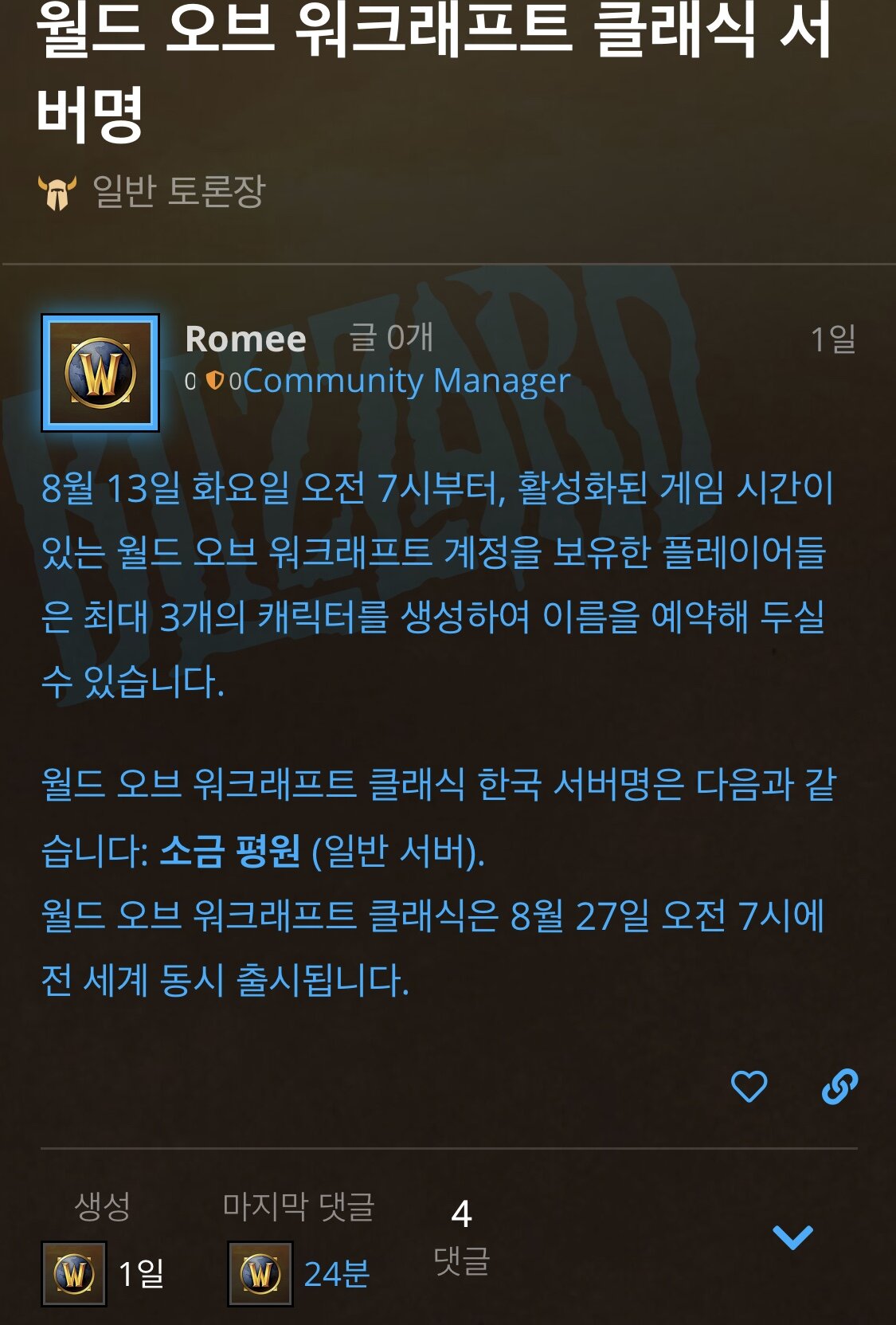 Subject   와우 클래식 서버 근황