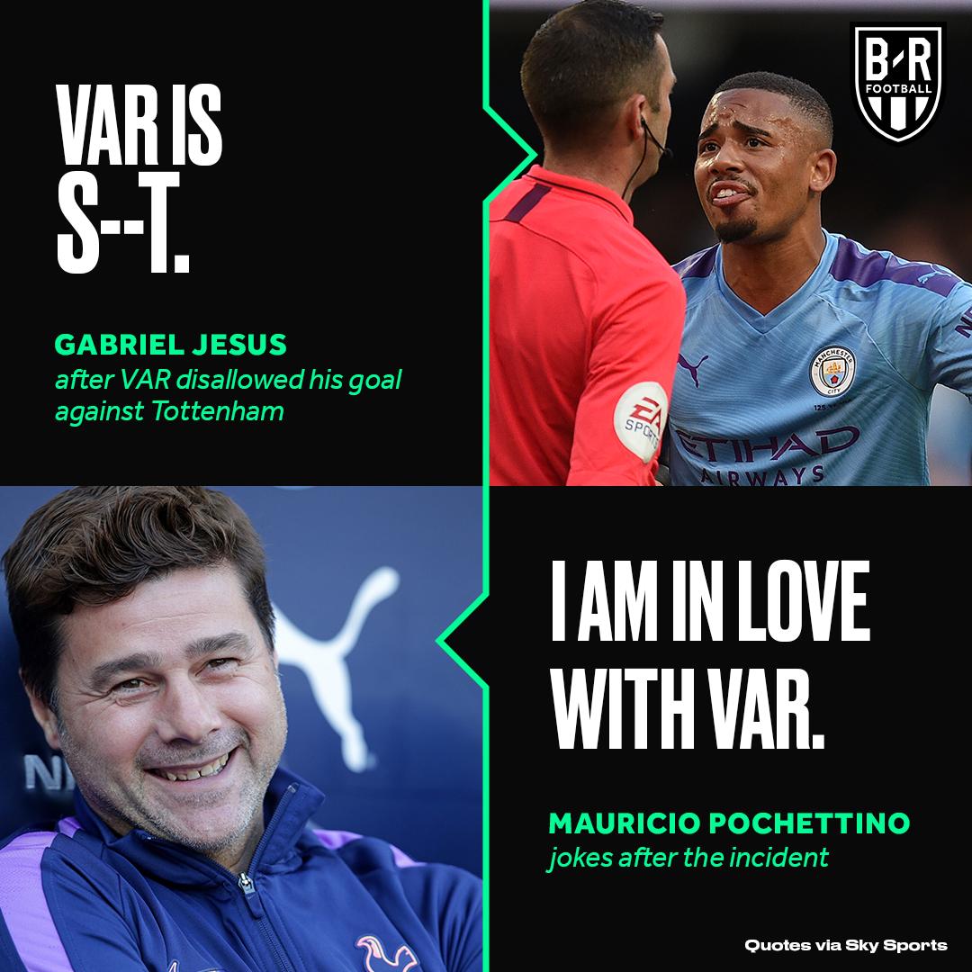 2019. 08. 17. Manchester City 2 (Sterling 20', Aguero 35') - 2 Tottenham (Lamela 23', Lucas 56') 그리고 추가시간 극장골이 VAR에 의해 취소당한 맨시티. 2019년 1월 첼시와의 리그컵 경기 승리 후 포체티노의 인터뷰 "VAR 판정으로 승리하는 것은 행복하지 않다. VAR 도입은 아무도 행복해지지 않는 것. 그리고 어제 경기 이후 포체티노의 인터뷰 "VAR을 받아들여야 한다. 규칙은 언제나 우리에게 득이 된다. VAR은 의심의 여지 없이 우리에게 득이 되지 않을 때도 있을 것이다. 하지만 필요한 규칙이다." 대신에 VAR에 새로 짜증을 내는 사람은 짤방에 보듯이... 참고로 이번 경기의 xG값은 맨시티 3.29 대 토트넘 0.19 어제 골장면은 다 봤는데 마지막 꿀잼 장면을 놓치고 잠들어서 참 아쉽습니다. 0