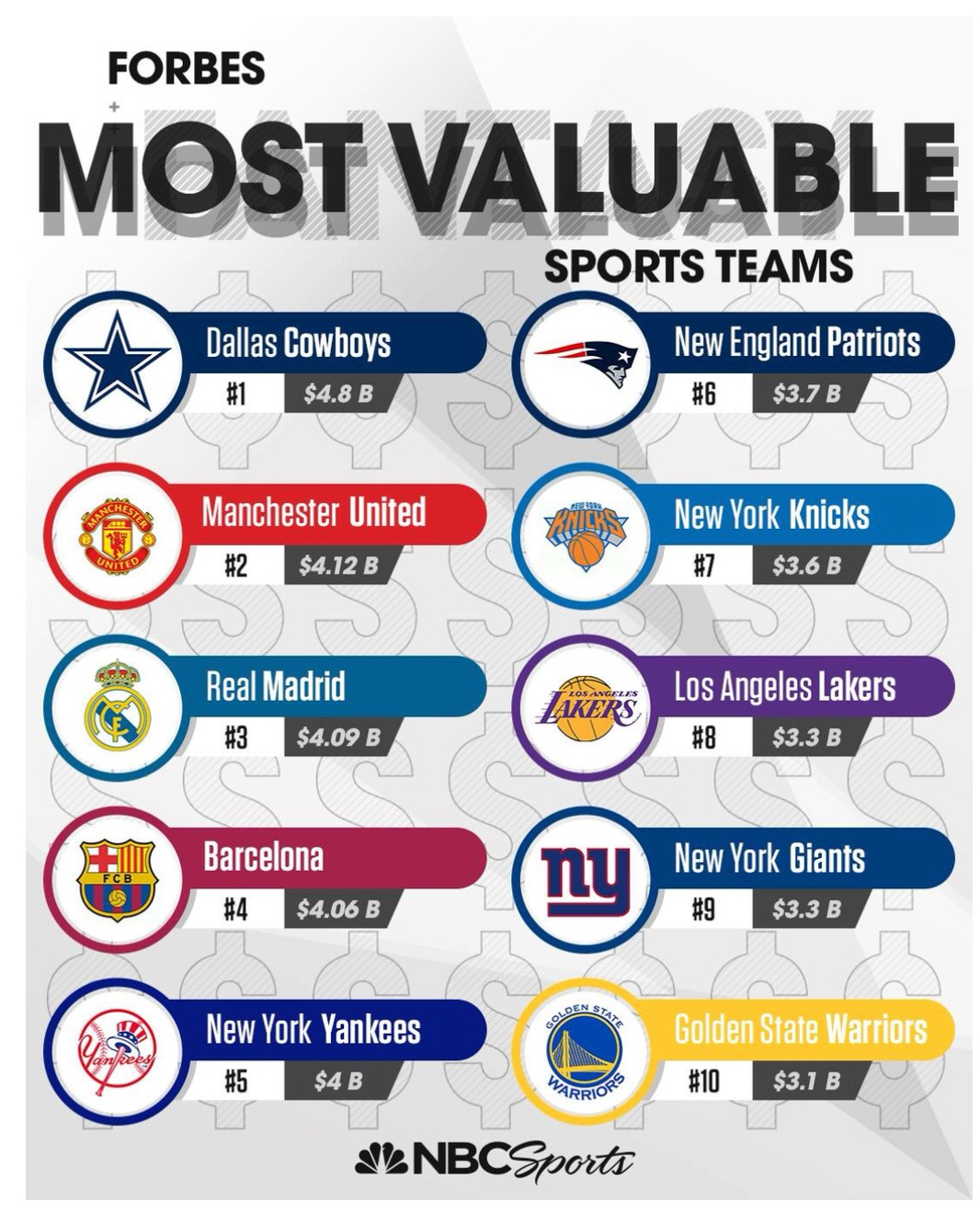 | Subject | 전세계에서 가장 비싼 스포츠 팀 탑 10 |