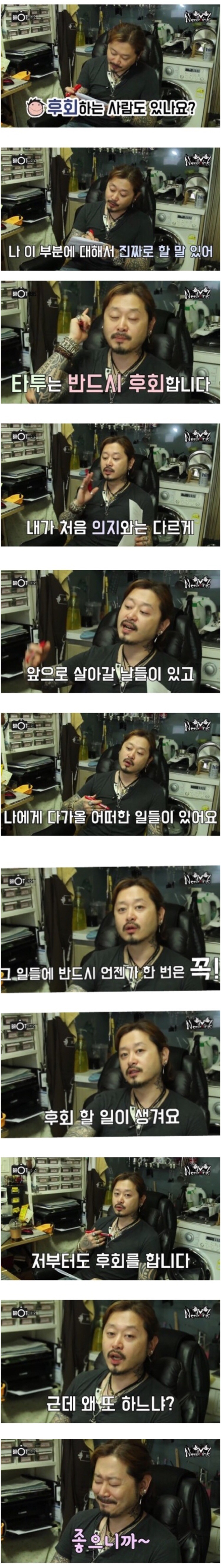 ㅋㅋㅋㅋ 백퍼후회 ㅋㅋ 하지만 좋으니까 표정은 완전 찐이네요 문신은 좋은데 백퍼 만족은 없고 그래서 계속 늘리게 되나봐요 ㅋ 2