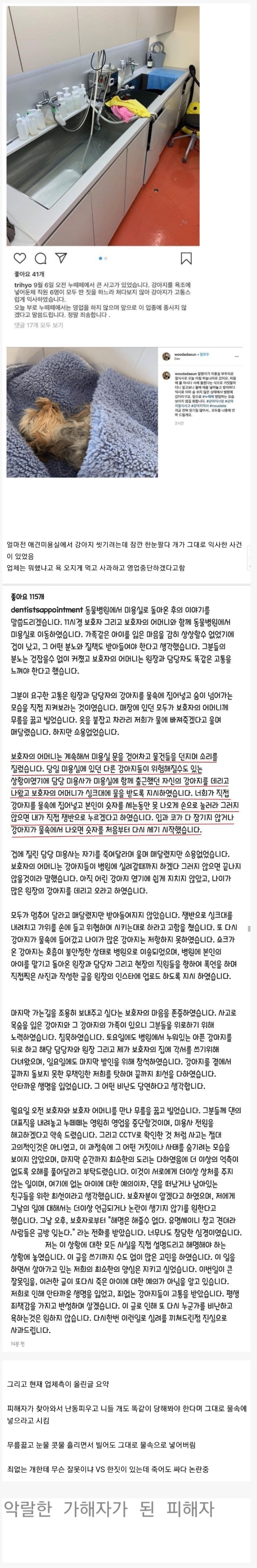 ------------------------ 원내용 짤이 있어 그걸로 대체했습니다. 찾아보니 사고 당사자분 인스타는 날라갔다하네요. https://www.instagram.com/dentistsappointment/ 좀 더 자세히 정리되어있는 블로그글이네요 https://blog.naver.com/jewriell/221641001437 https://blog.naver.com/jewriell/221646049690 0