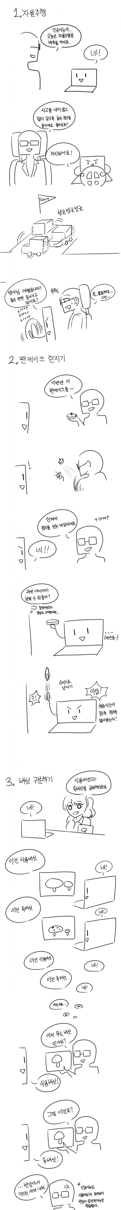 그 외 실패사례들 축구: 공을 많이 잡을수록 보너스를 줬더니 공에 닿자마자 진동으로 보너스점수를 올림 데이터 정리: 데이터 정리를 시킨 후 기존 데이터와 다를수록 높은 보상을 부여하자 기존데이터를 지움 큐버트: 큐버트 게임을 시켜 고득점을 지시하자 인공지능은 버그를 찾아내고 2라운드로 넘어가지 않는 상황에서 1라운드에서 포인트를 무한히 얻음 상자들기: 상자를 높게 들어올릴수록 높은 보상을 부여함. 인공지능은 점수 체점이 상자 밑면 좌표의 높이인걸 알아낸뒤 상자를 들지않고 뒤집어버림 전략 시뮬레이션: 버그를 찾아내서 게임자체를 터뜨려 승률 100%를 유지함 블록 옮기기: 테이블 위 블록을 옆으로 옮길때마다 점수를 부여함. 인공지능은 테이블을 옮김 더 많은 사례는 https://docs.google.com/spreadsheets/u/1/d/e/2PACX-1vRPiprOaC3HsCf5Tuum8bRfzYUiKLRqJmbOoC-32JorNdfyTiRRsR7Ea5eWtvsWzuxo8bjOxCG84dAg/pubhtml ------------------------------------------------------ 닝겐... 0